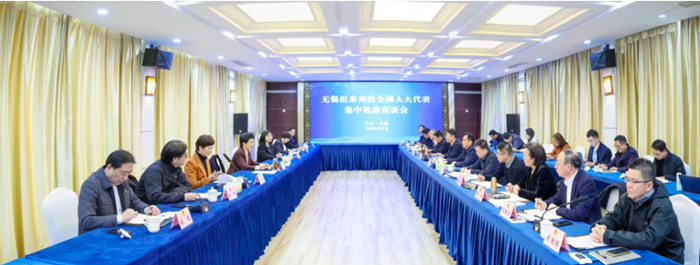 28日下午,代表们参加在姜堰区召开的座谈会,听取姜堰区政府、市有关部门情况汇报,听取企业负责人、一线工人、农民的意见建议。代表们对我市推进区域高质量一体化发展取得的成效给予充分肯定,同时立足无锡、泰州两地发展实际,着眼区域协同大局,提出了很多站位高、落点实、针对性强的意见建议。